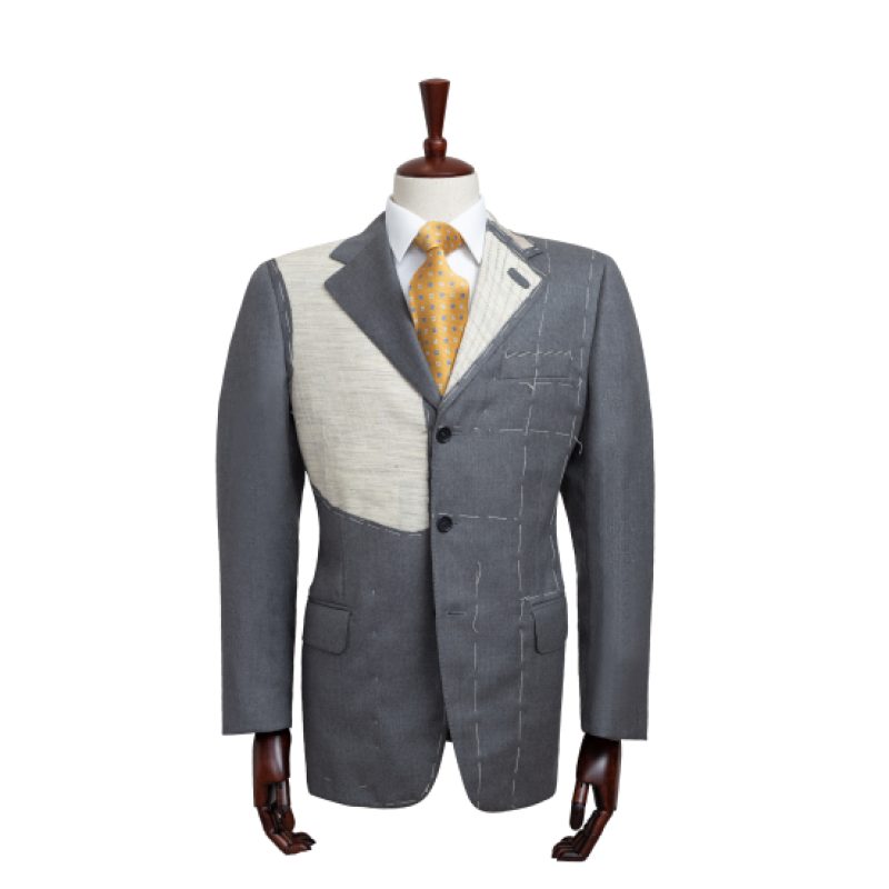 The most popular choice for those who are new to luxury tailoring, yet many of our seasoned clients also choose half canvas for its lighter weight, great comfort and lower cost. Half canvas interlinings extend from the softly padded shoulder to half-way down the jacket body. This use of less canvas produces a lighter feel with a supreme drape, i.e. the way the jacket hangs or falls over the body. The shoulder moulds to the wearer’s body, enhancing the fit and durability of the suit whilst increasing its comfort and range of style options .